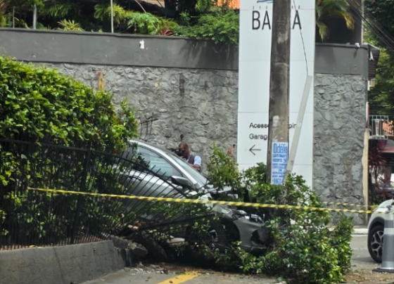 Idosa perde controle do carro e derruba portão do Shopping Barra