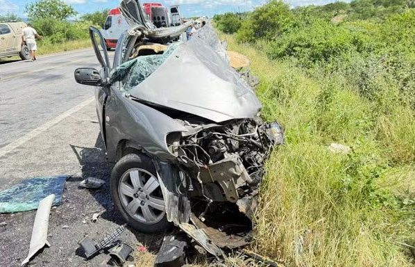 Os dois estavam no veículo de passeio e morreram ainda no local. Os corpos ficaram presos às ferragens e precisaram ser retirados com auxílio de equipamentos específicos.