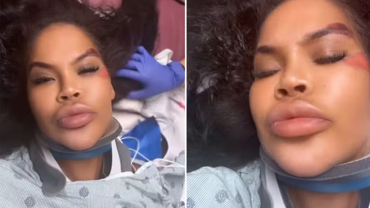 O caminhão bateu no carro da influenciadora, gerando o impacto que feriu o corpo da mulher. A polícia local foi acionada e Uchea foi encaminhada ao hospital.