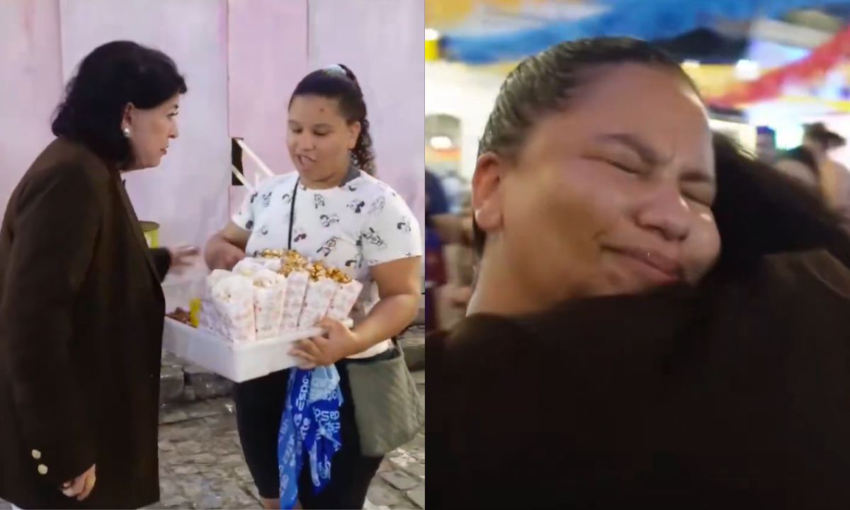 A vendedora ficou sem acreditar e se surpreendeu mais ainda quando Roberta Miranda aumentou o valor para R$ 800. “Deus abençoe a senhora, muito obrigado”, disse enquanto chorava e abraçava a artista.