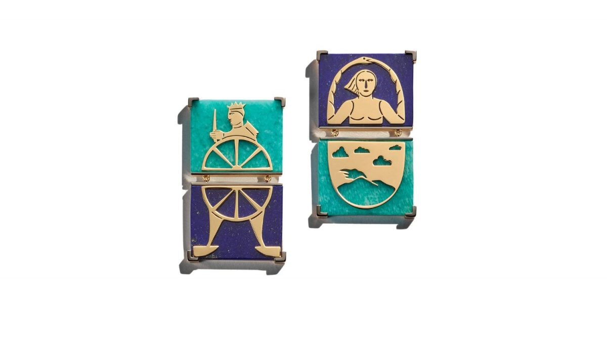 Brincos da Sauer inspirados nas cartas de tarô, “O Mundo” e “A Roda da Fortuna”